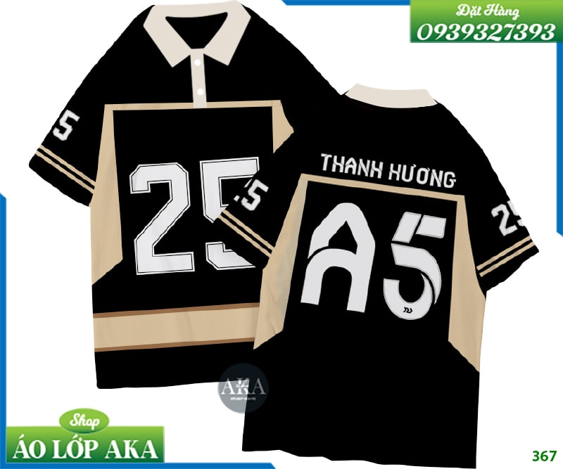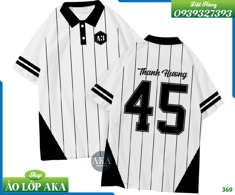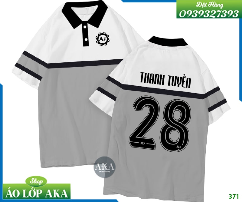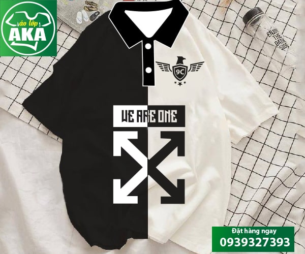 Mẫu áo đồng phục lớp màu trắng đen, in logo, slogan theo yêu cầu.